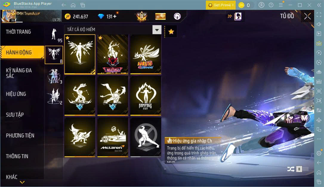 Hình ảnh chi tiết của tài khoản