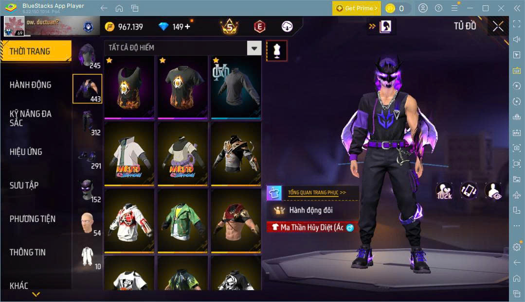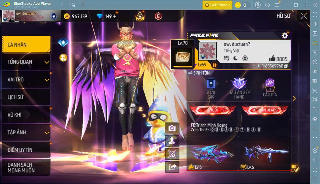 Hình ảnh chi tiết của tài khoản