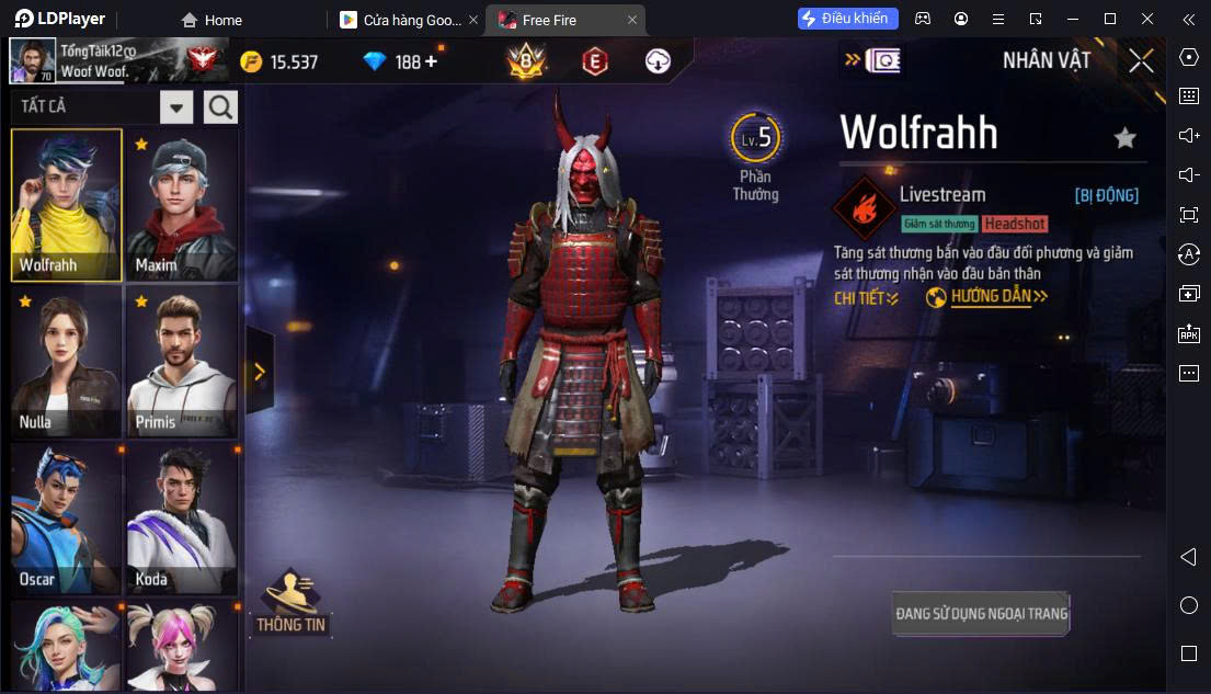 Hình ảnh chi tiết của tài khoản