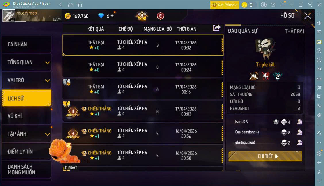 Hình ảnh chi tiết của tài khoản